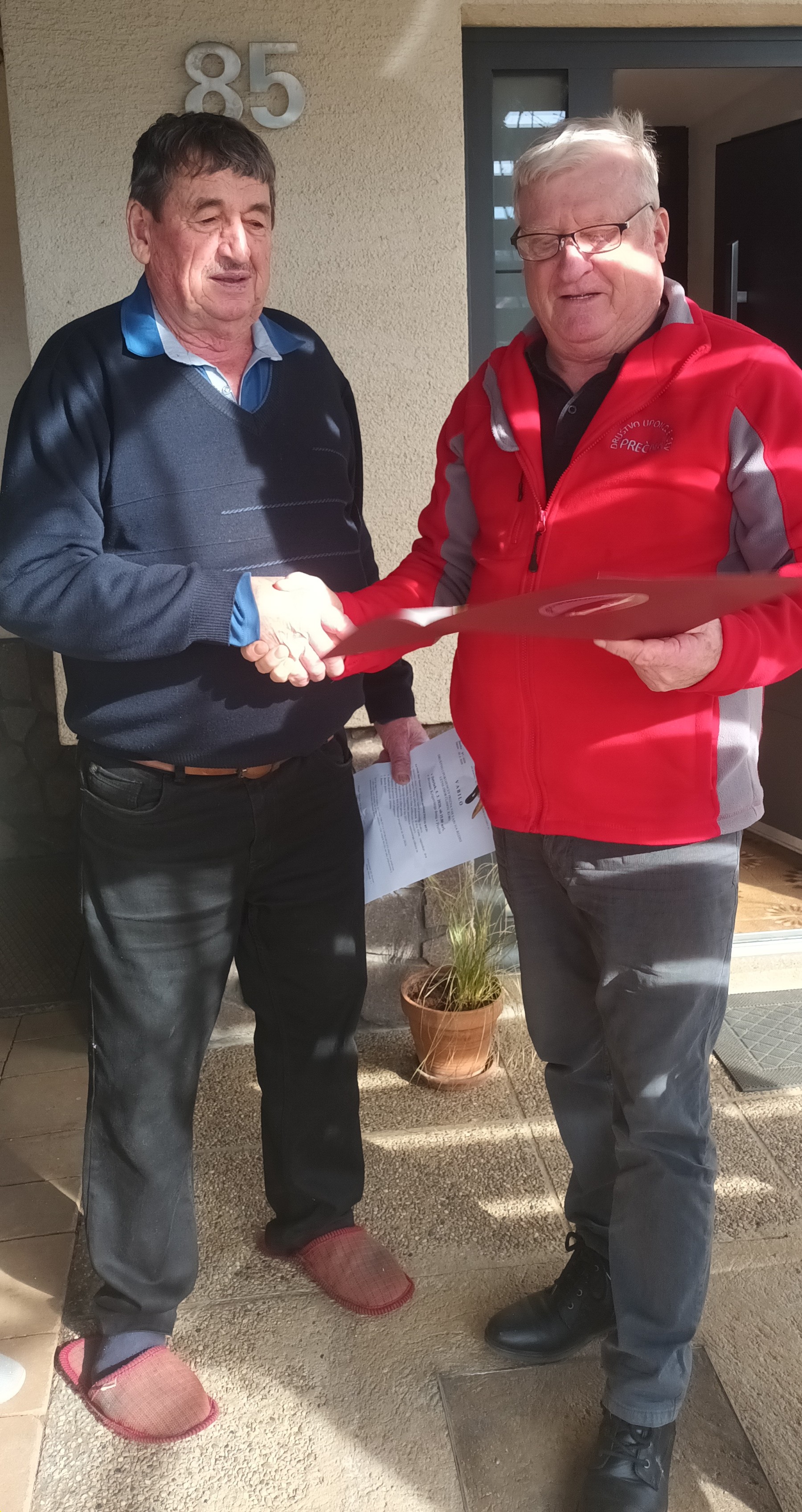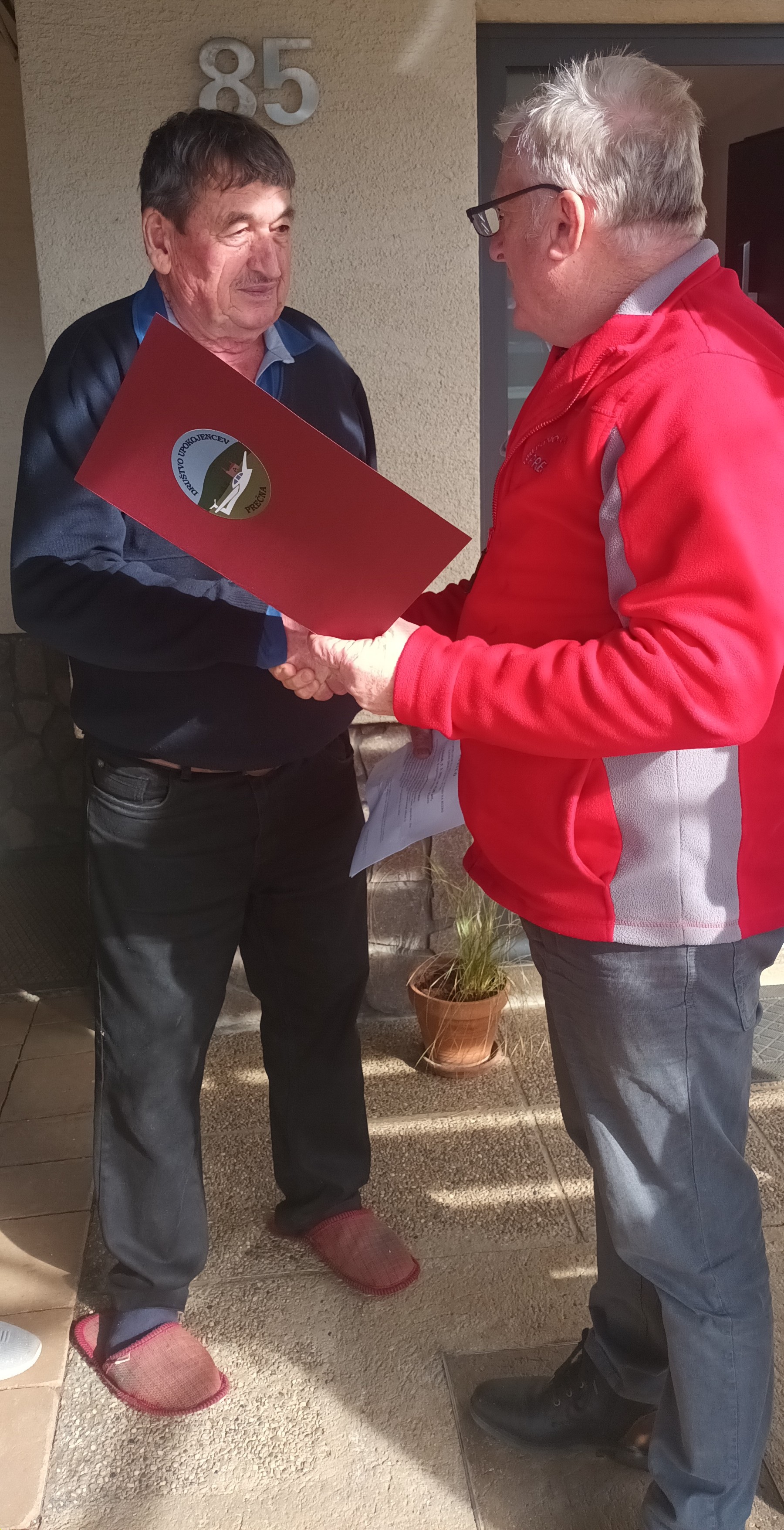 Zaželeli smo mu vse najboljše, predvsem pa trdnega zdravja z željo, da mu le-to še vrsto let služi. Ob tej priložnosti smo mu izročili društveno voščilnico in darilo. Slavljenec je nas lepo sprejela. Zadržali smo se kar nekaj časa v krajšem klepetu.
