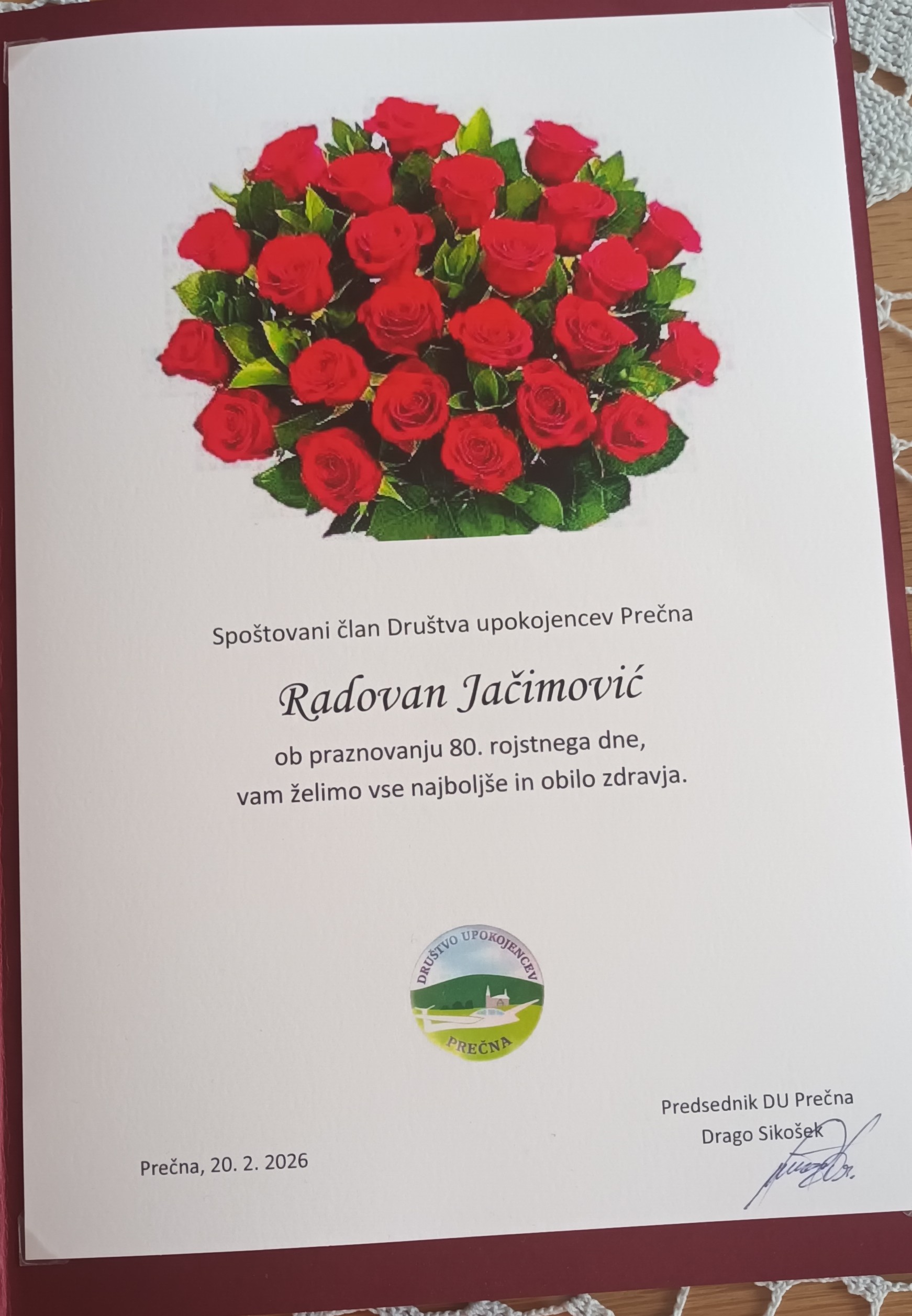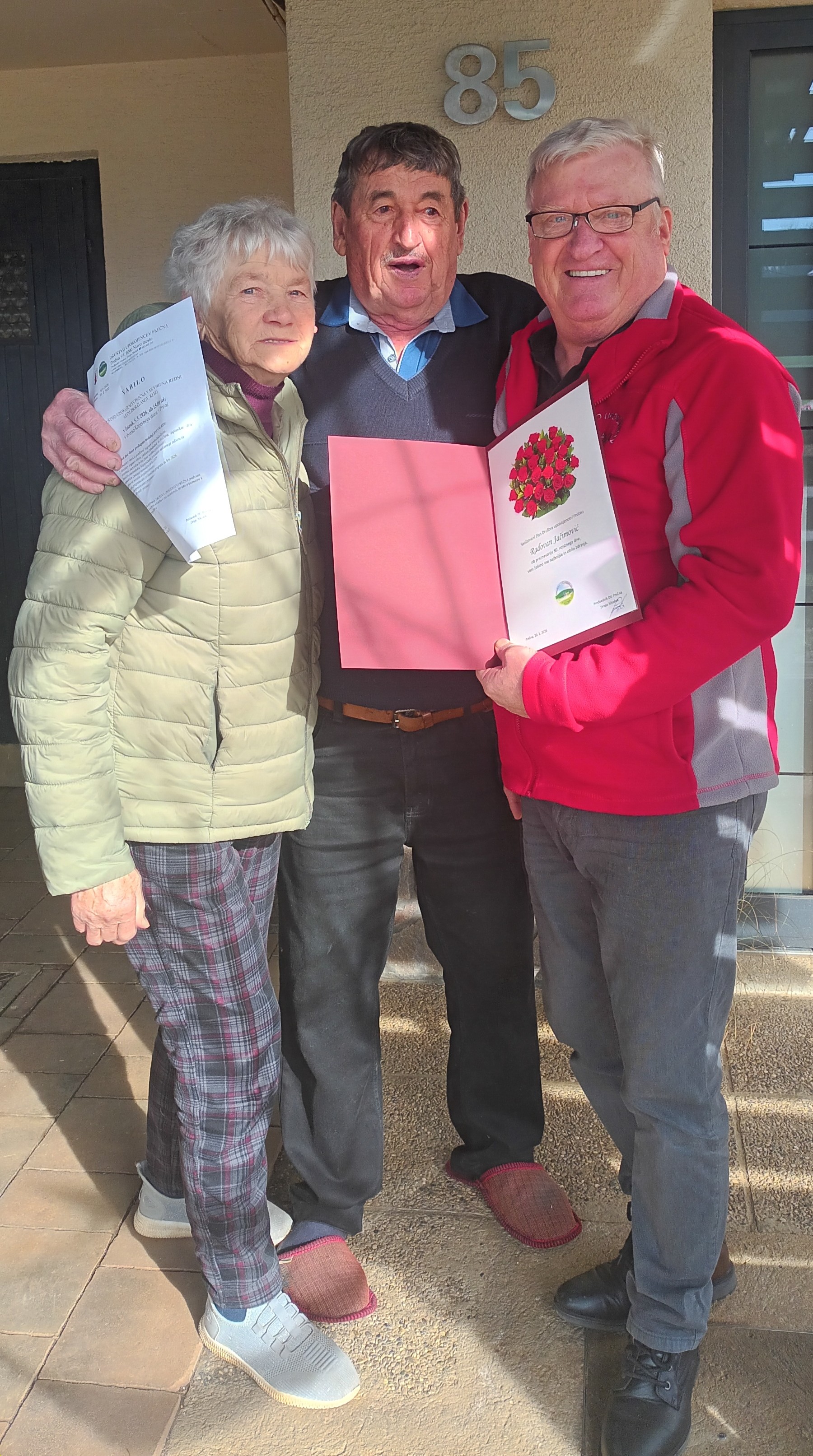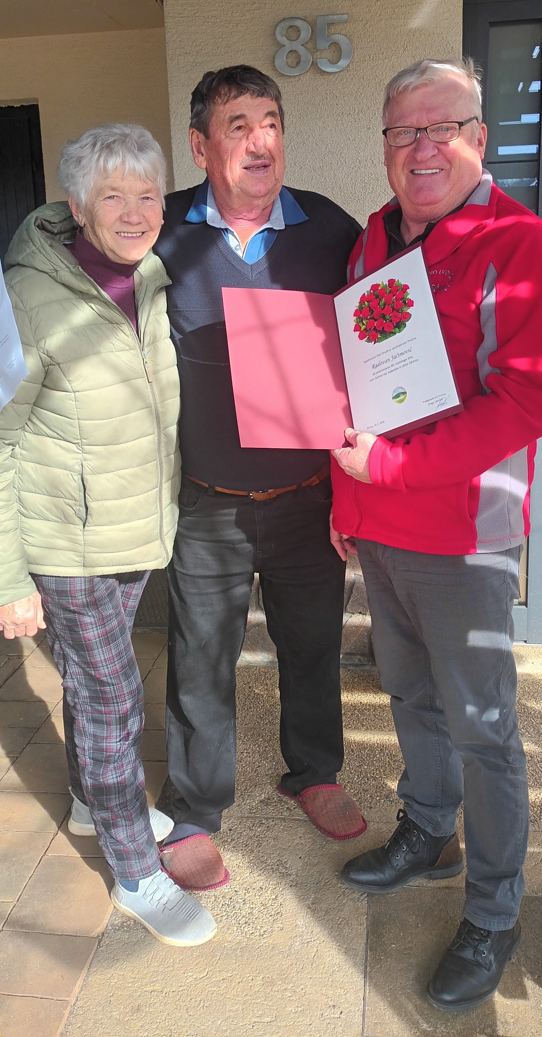 Člani DU Prečna, predsednik Drago Sikošek, tajnica Danica Rešetič in poverjenica Anica Krapež smo 23.02.2026 obiskali našega dolgoletnega člana Radovana Ačimović iz Prečne, ki je praznoval 80. rojstni dan.