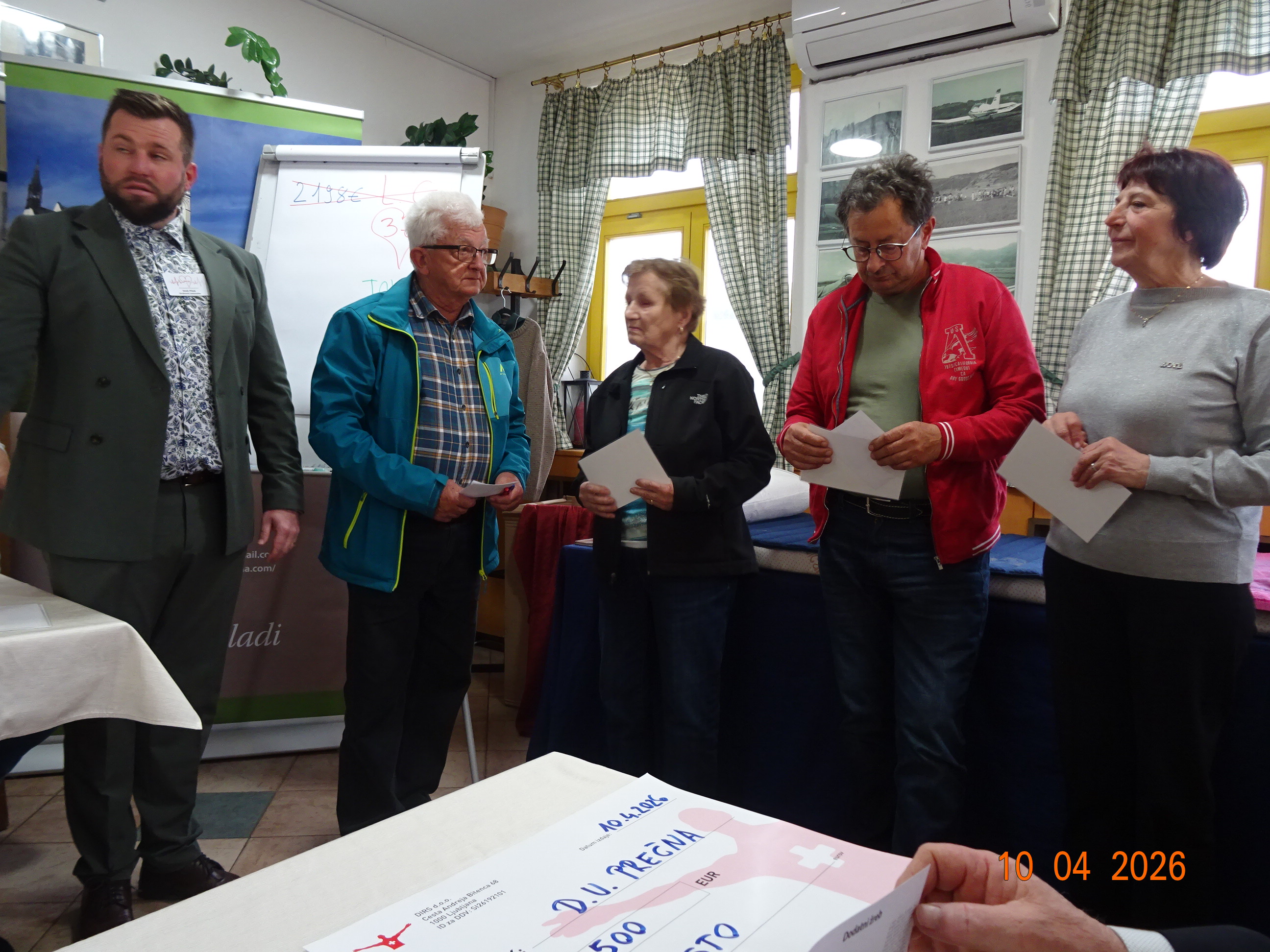 V petek, 10. 4. 2026 so se člani DU Prečna udeležili predstavitve ortopedskih pripomočkov, ki je bilo v gostilni Na Letališču v Prečni. Podjetje DIRS d.o.o. iz Ljubljane, je predstavilo Biomagnetno ležišče, vzglavnik in ledvični pas. Predstavitve se je udeležilo 30 članov DU Prečna. Ob koncu predstavitve je predavatelj pripravil še tombolo. Podpredsednik Drago Šulc je izžrebal dva srečna dobitnika ledvičnega pasu.